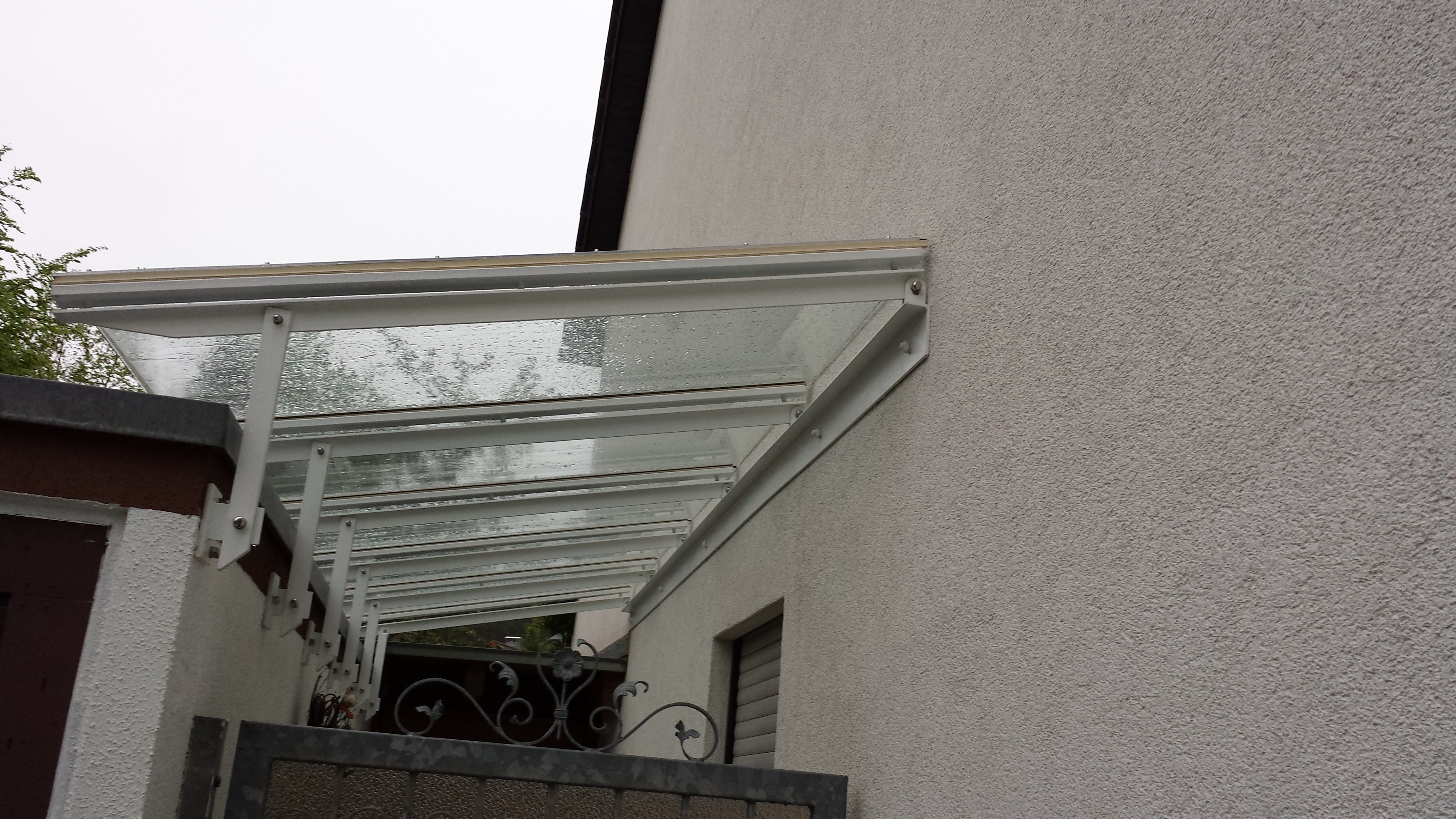 Die moderne Form des Vordachs besteht aus einem zusätzlichen kleinen Dach, das über dem Eingangsbereich eines Hauses am Mauerwerk angebracht wird.