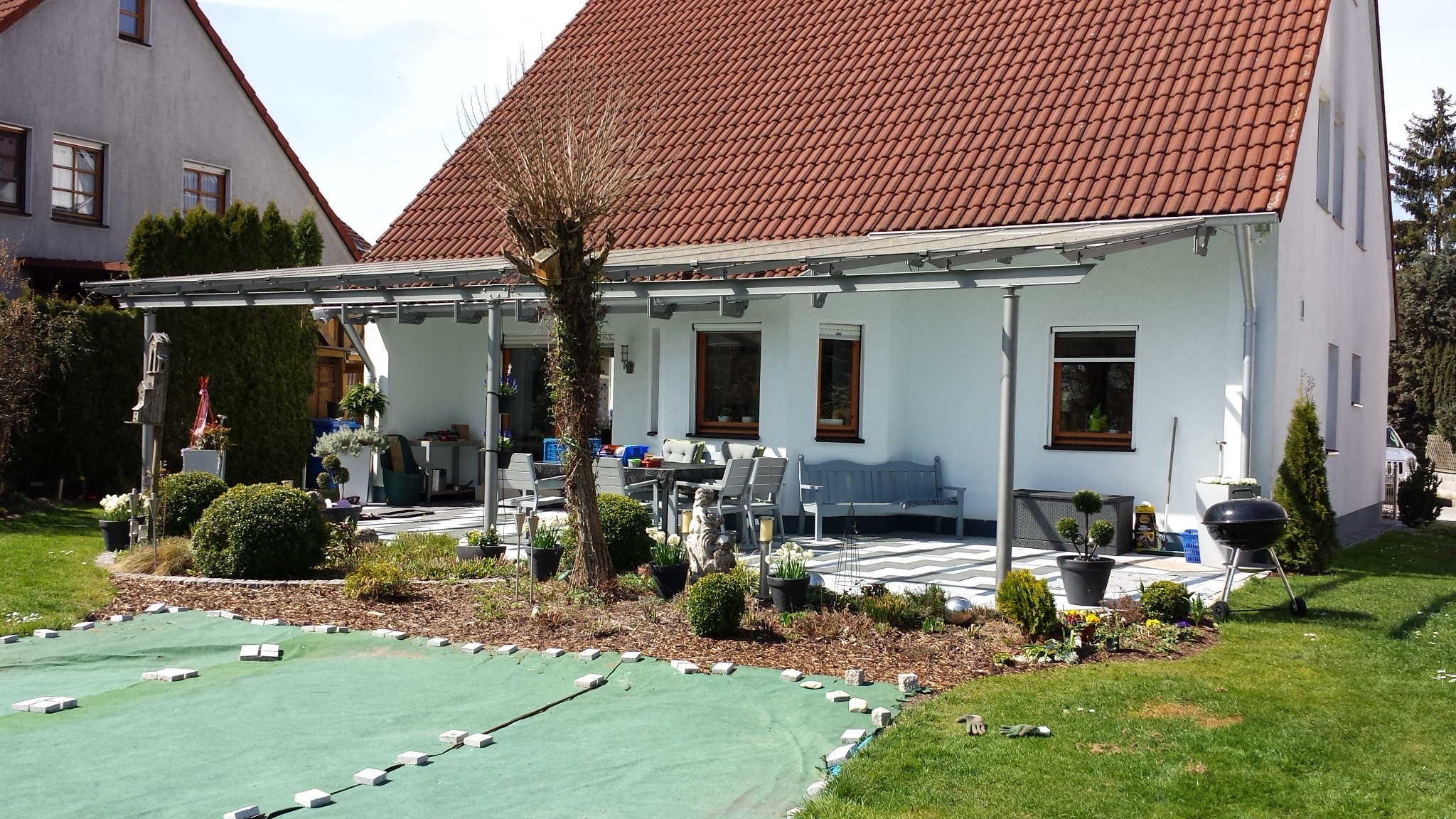Terassenüberdachung 214-1 Abstützen der Dach Konstruktion vor dem Terrassen Belag