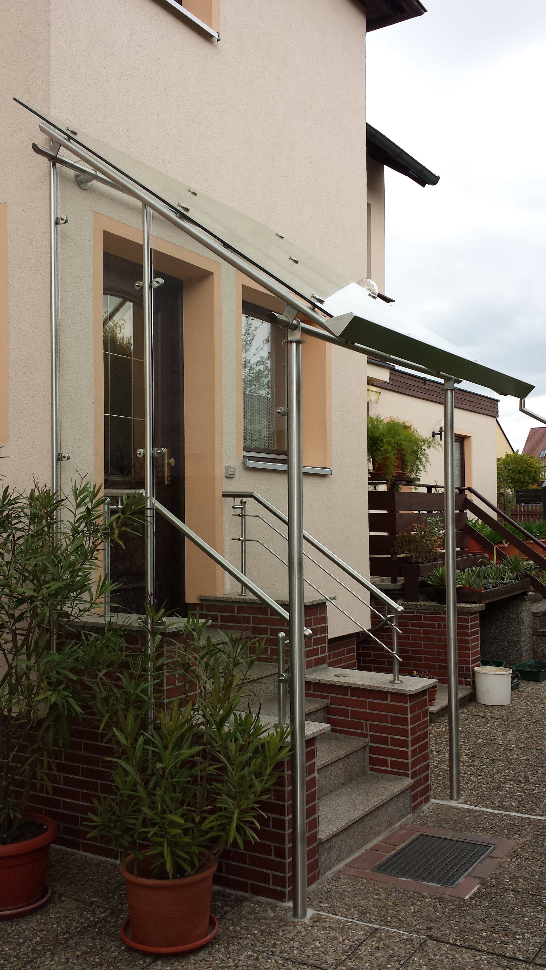 Vordach 222 Gallerie: Vordächer Beschreibung: Edelstahlvordach mit Windschutz - Sicherheitsverglasungen filigrane Eingangsüberdachung mit Windschutz-Seitenteilen