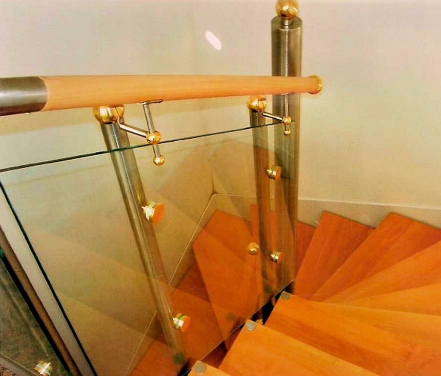 Treppengeländer 45 Gallerie: Innen Geländer Beschreibung: Edelstahl-Messing.Holzhandlauf - Edelstahlrundrohr im Treppenauge Sicherheitsglas-Füllung