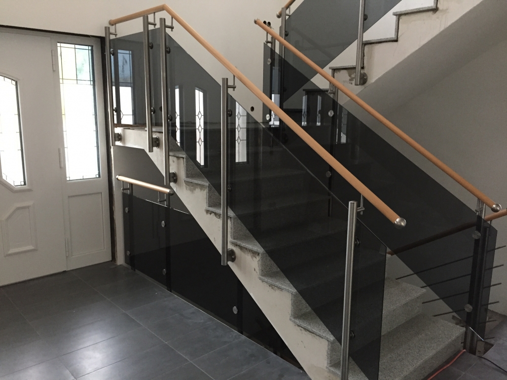 Treppengeländer 204 Gallerie: Innen Geländer Beschreibung: Beschreibung: Edelstahlstützen-Holzhandlauf- rauchfarbene Sicherheitsgläser