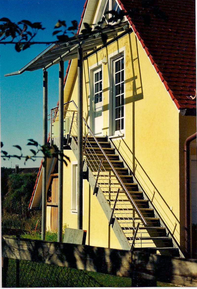 • Freitreppen befinden sich außerhalb des Gebäudes, aber an das Gebäude angebaut und sind nicht überdeckt. Diese Treppen führen meist zu einem Gebäudezugang.