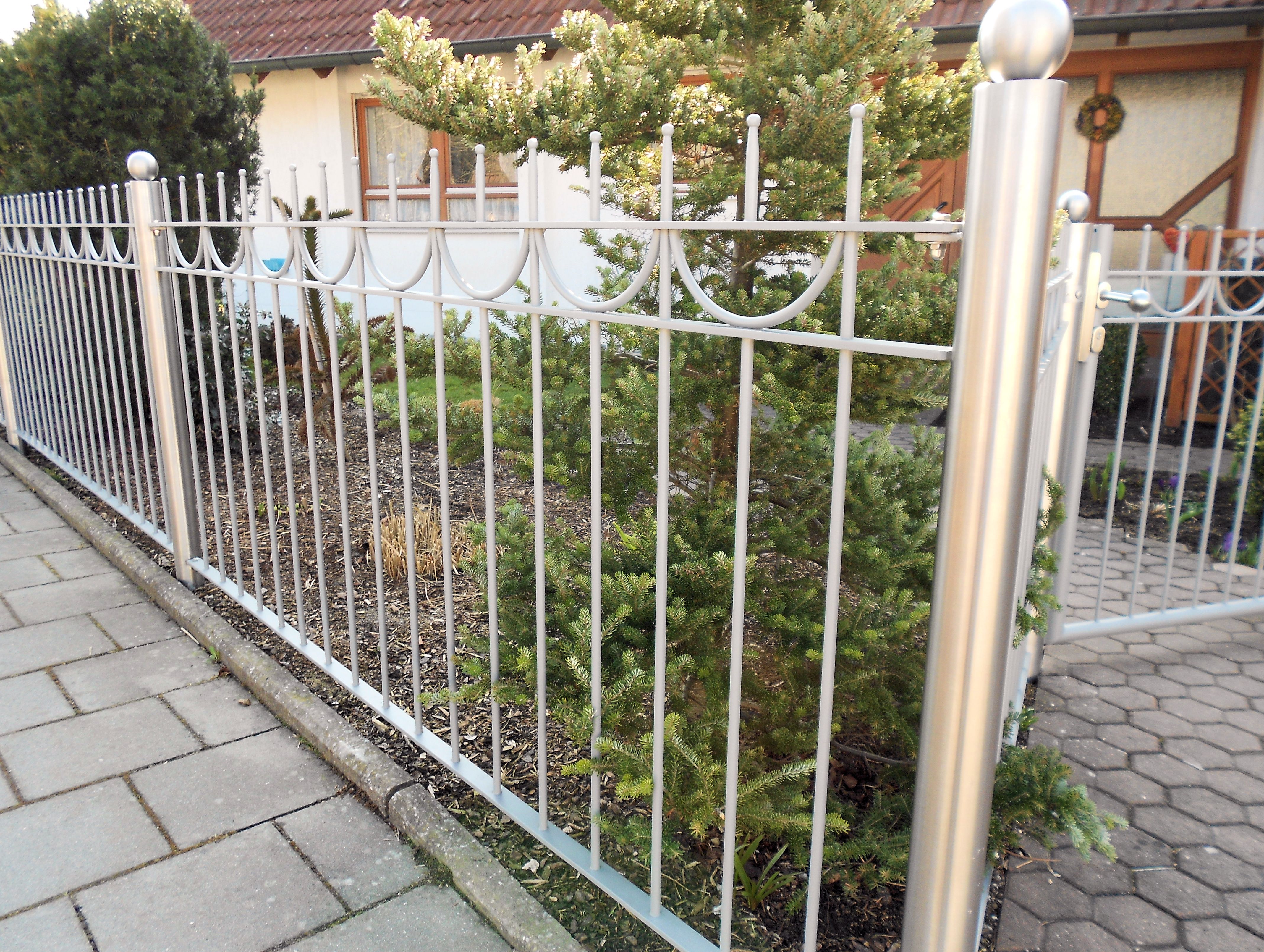 Der Metallzaun oder auch Gittermattenzaun oder Doppelstabgitterzaun wird aus Stahl oder Aluminium gefertigt. Die Metallstäbe können voll, quadratisch oder rechteckig sein, aber auch zu geschwungenen Mustern verwoben sein. Früher vor allem an repräsentativeren Gebäuden verbaute schmiedeeiserne Zäune in vielfältigster Gestaltung spielen als echt geschmiedete Aussenelemente allenfalls noch als historische Bauersatzteile eine Rolle wegen der Kosten. Jedoch hat der Markt von industriell vorgeformten Elementen zum Zusammenschweissen zu 'schmiedeeisernen' Zäunen eine Nischenrolle übernommen.